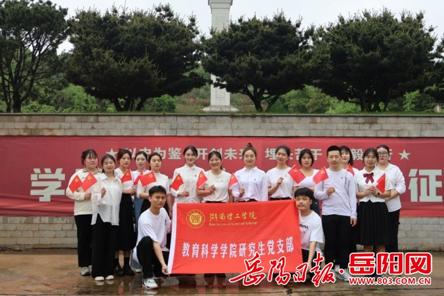 为进一步传承红色基因,推动党史学习教育走深走实,教育科学学院研究生党支部书记王炜老师带领研究生党员及优秀入党积极分子一起来到“移动党课”第一站——岳阳市烈士陵园,研究生党支部宣传委员彭杨担任宣讲人,为大家讲解红色文化,共同缅怀张超烈士。研究生党支部副书记谷俊科代表党员领誓,全体党员重温入党誓词,学习革命先烈的事迹,继承和发扬革命先烈的牺牲精神,将爱国之情、报国之志—化为实际行动。