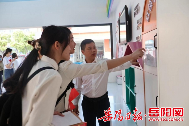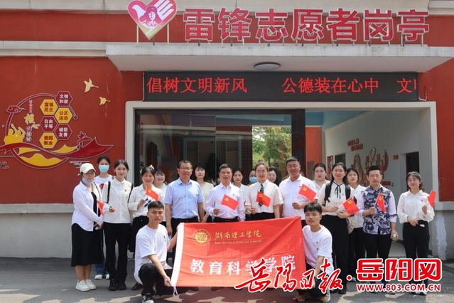 为发扬雷锋精神,感悟雷锋思想,教育科学学院院长刘理、研究生党支部书记王炜带领研究生党员以及优秀入党积极分子对“移动党课”第三站——朝阳小学“雷锋志愿者岗亭”进行参观学习。在雷锋志愿者岗亭前,朝阳小学校长、湖南理工学院实践导师徐辉以雷锋的奉献精神、钉子精神、艰苦奋斗精神为切入点为全体研究生党员和入党积极分子生动地讲述雷锋故事,大家怀着无比崇敬的心情,重温雷锋精神,深刻感受雷锋同志无私奉献和一心服务群众的大无畏精神。同时,徐校长还为大家一一介绍了雷锋岗亭中的红领巾储蓄所、志愿者衣帽间、校园安全救助站等,朝阳小学将德育工作常态化,以落实立德树人的教育根本任务。