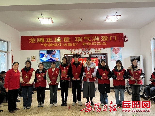 岳阳日报全媒体讯(记者 方璐 实习生 马颖)1月18日上午,岳阳市德馨助残服务中心(蜗牛山庄)的活动大厅内一片热闹非凡,现场提前支棱起了新春布置,正值腊八节,年味浓浓。中智协副主席、湖南省智协主席、岳阳市德馨助残服务中心主席陈丽湘和首都师范大学八名志愿者以及“蜗牛”们用热烈的掌声,欢迎到场的嘉宾,也为“牵着蜗牛去散步”新春联欢会拉开序幕。