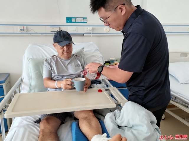 李光世老师的病床旁的一张折叠床,是两个“儿子”晚上的“临时住处”。除了处理紧急的工地事务,籍浩楠几乎全天守在医院。每天清晨,他都会端着温水和挤好牙膏的牙刷,蹲在床边帮李光世洗漱;怕老师躺着不舒服,他特意回家取来干净的换洗衣物,小心翼翼地帮老师擦拭身体;妻子则在家变着花样做饭,荤素搭配、营养均衡,由他趁热送到病房。