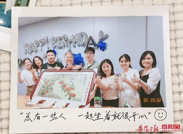 “老师过去怎么对我们,我们现在就怎么对他。”李兆发说:“我当年刚到岳阳,特别想家,是李老师拉着我去他家里吃饭,说‘这里就是你的第二故乡’。”籍浩楠也说,正是李老师给他的这份温暖,让他在岳阳找到了家的感觉,让他毕业后选择留在岳阳。