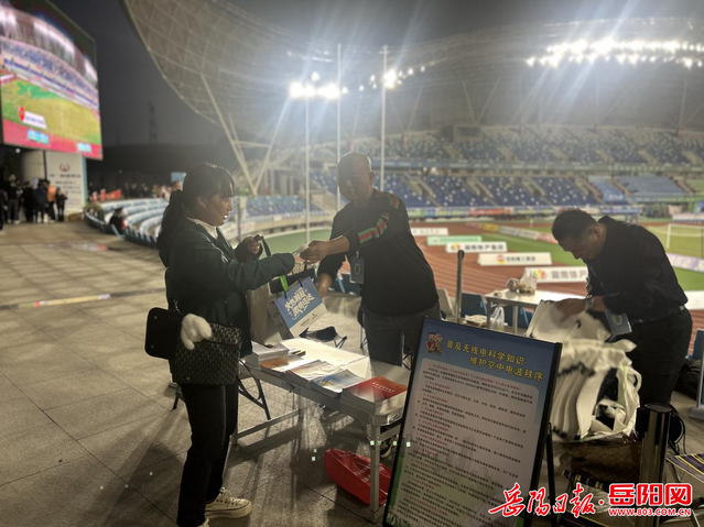 11月,宣传活动借力赛事热度实现“精准触达”。在湘超岳阳主赛区现场,工作人员通过发放宣传资料、赠送定制手袋等接地气的方式,向观赛群众普及《中华人民共和国无线电管理条例》核心内容,讲解“黑广播”“伪基站”的危害及识别方法 ,借助赛事的广泛影响力凝聚社会共识,呼吁各界共同维护电磁空间秩序。