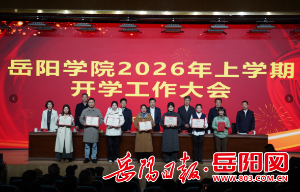 会议首先对荣获2025年度先进集体及个人进行了隆重表彰。随后,岳阳学院党委副书记、校长卢先明用一组硬核数据勾勒出岳阳学院办学元年的坚实步履。招生迎新稳起步:首届招生3500人,报到3363人(报到率96.09%)。师生成果亮风采:9位教师获市级以上奖项15项,其中国家级1项、省级12项;学生首次参战湖南省大学生排舞比赛就斩获“三金四银”。融合发展拓新局:拓展校企合作单位50余家,落地科研项目22项,服务地方与产业能力初显。平安校园筑根基:全年实现安全零事故,为高质量发展提供了坚实保障。