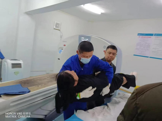 接到电话,杜文斌没有丝毫犹豫和迟疑,抓起外套就往4栋狂奔。推开伍娭毑家门的那一刻,他看到老人面色苍白、气息微弱,双目紧闭、毫无意识,情况十分危急。他没有丝毫慌乱,一边轻声安抚慌乱的老人家属,语气坚定地说道:“大爷您别慌,有我在,我一定安全把阿姨送到医院,不会有事的。”一点点缓解老人家属的焦躁情绪,一边迅速蹲下身,小心翼翼地将伍娭毑轻轻背在背上,手臂紧紧托住老人的双腿,生怕稍有不慎让老人受到磕碰,加重病情。