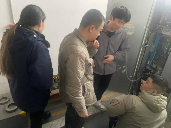 虎形山社区清华苑小区党支部书记杜文斌(右一)与社区和物业抢修机械设备